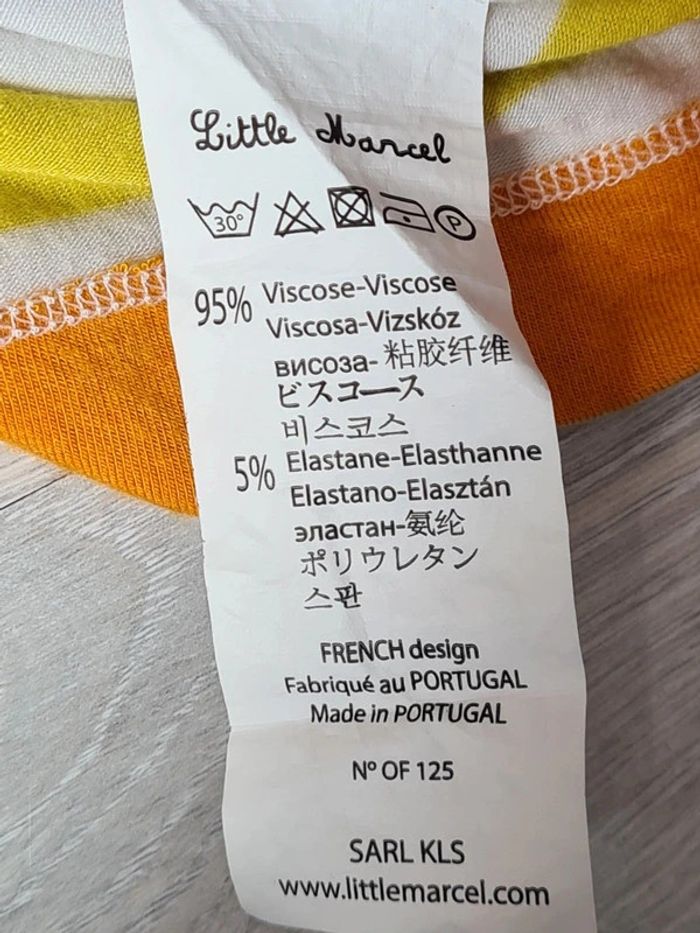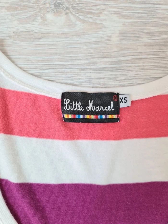 Débat Little Marcel Taille XS 95% viscose et 5% elastane Rayures blanches rose violette orange rouge jaune Porté mais ni trou ni tache #julilo7femme