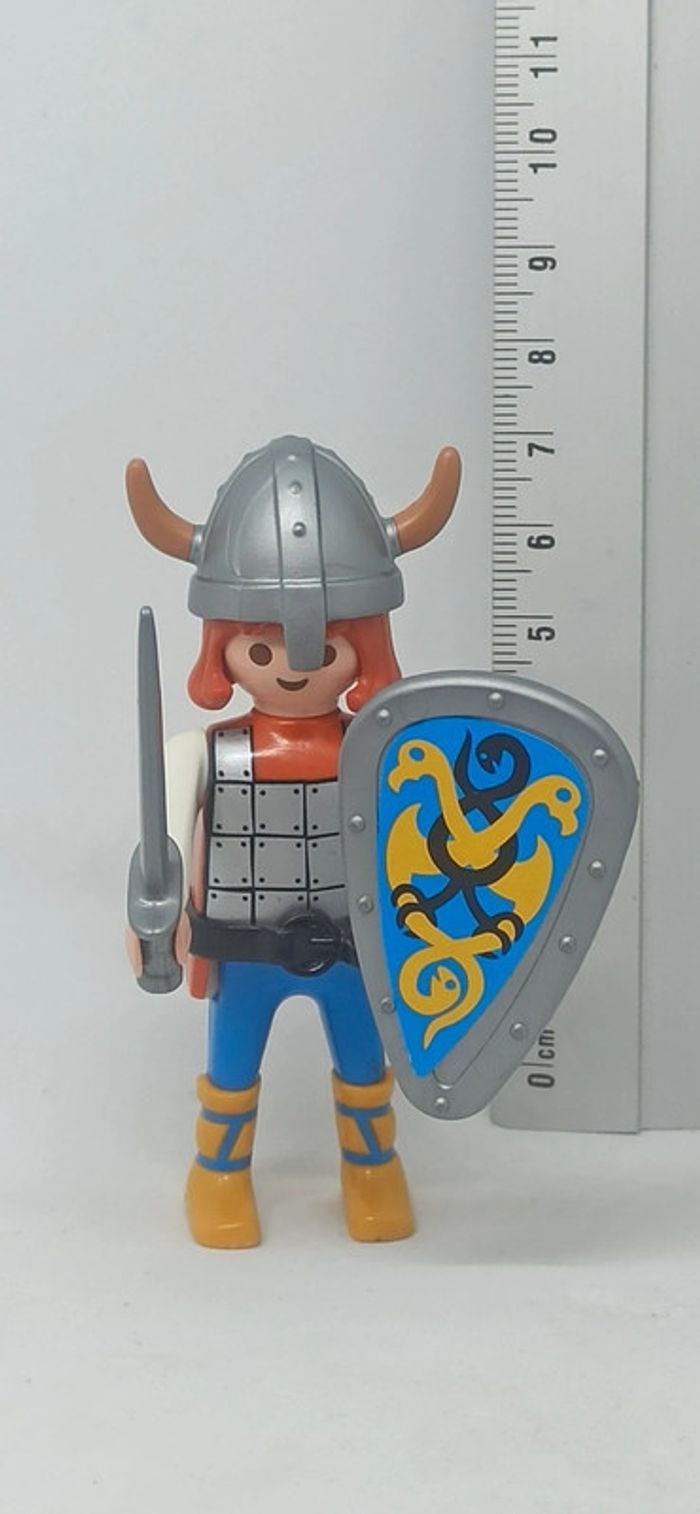 Homme viking avec casque à cornes et bouclier bleu playmobil - photo numéro 1