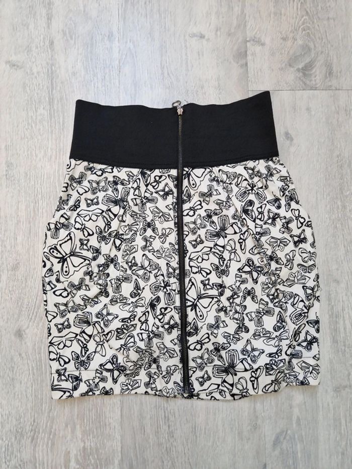 Jupe courte blanche et noire papillons trafaluc collection indiquée taille M mais convient à un XS - photo numéro 3