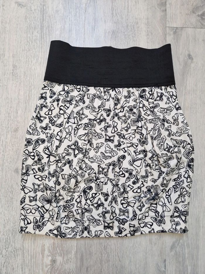 Jupe courte blanche et noire papillons trafaluc collection indiquée taille M mais convient à un XS - photo numéro 1