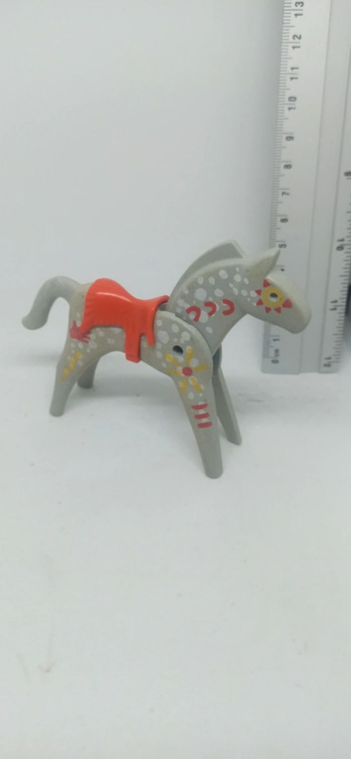 Cheval indien gris vintage avec peintures et selle playmobil - photo numéro 2