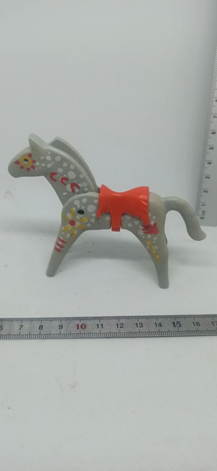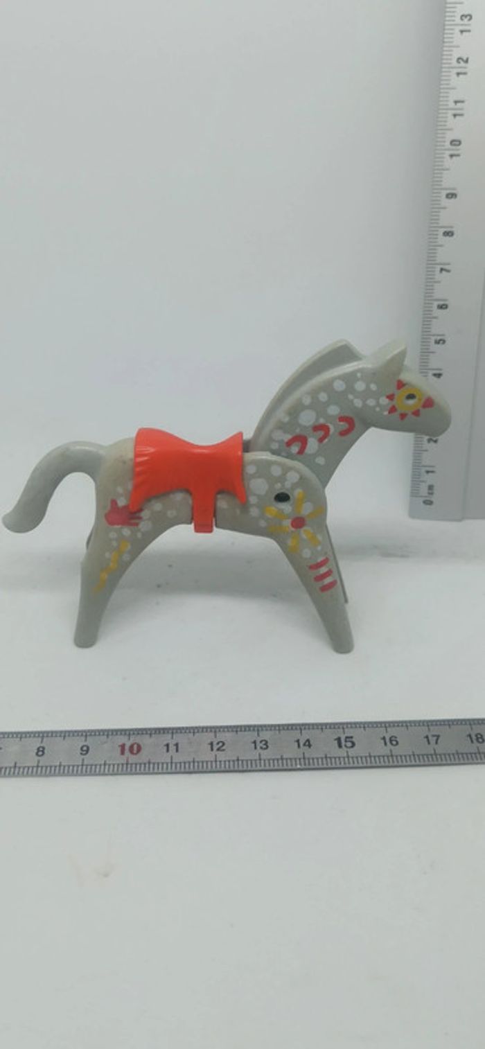 Cheval indien gris vintage avec peintures et selle playmobil - photo numéro 1