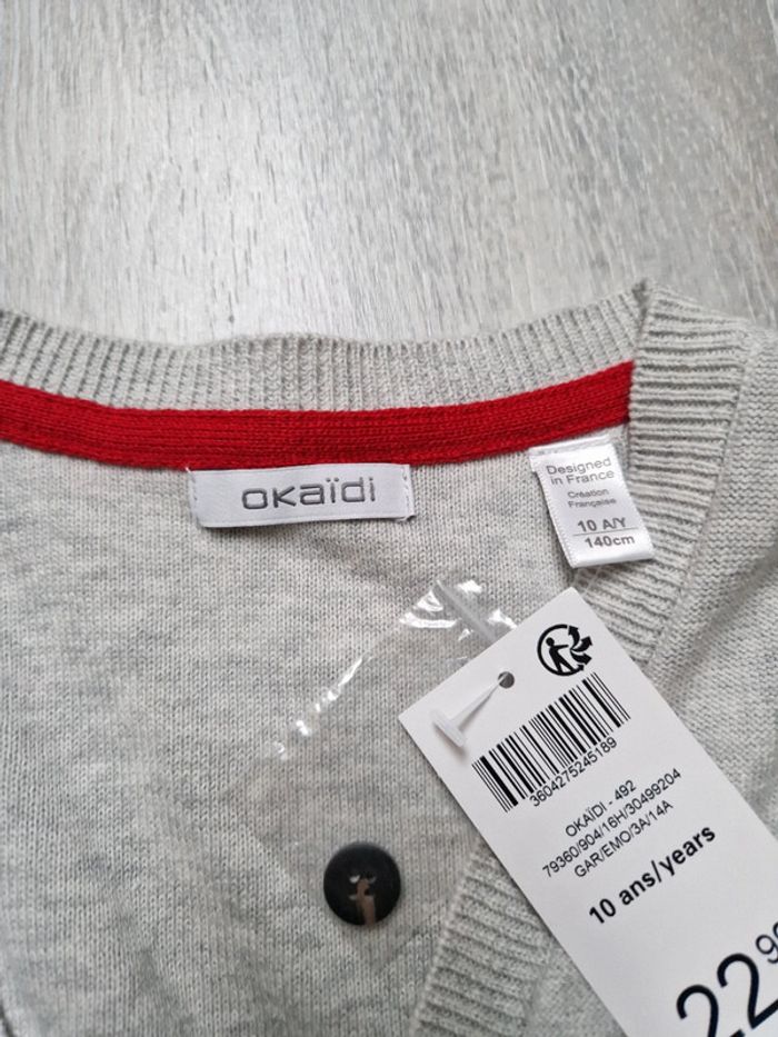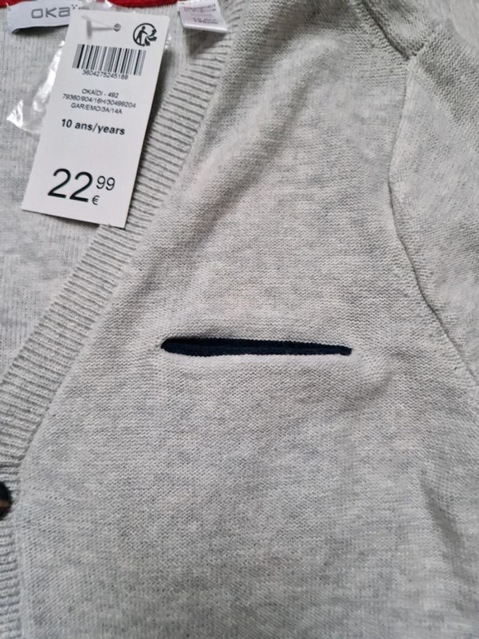 Gilet gris boutonné okaidi 10 ans neuf avec étiquette - photo numéro 3