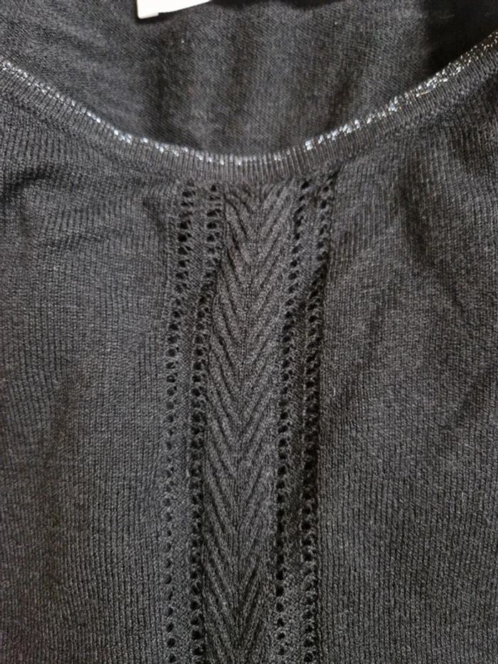 Pull noir XS neuf avec étiquette épaules volantées et col argenté - photo numéro 3