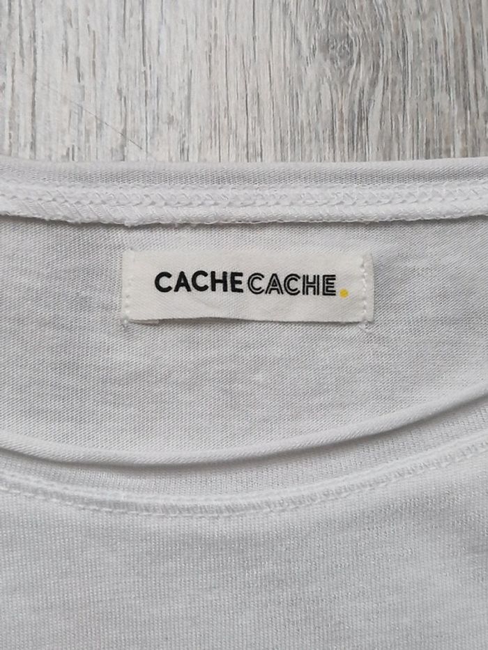 Tee-shirt manches courtes blanc Cache-cache #julilo7femme Porté une fois, comme neuf Étiquette de taille coupée mais c'est une taille XS (Voir mesures indiquées)