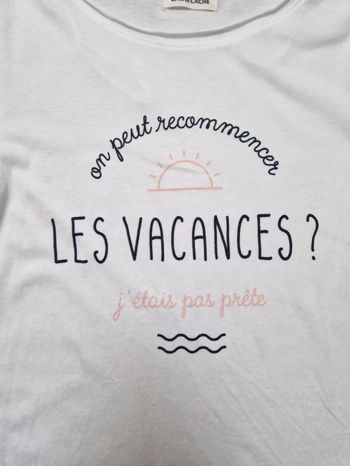 Tee-shirt manches courtes Cache-cache "on peut recommencer les vacances j'étais pas prête" - photo numéro 2