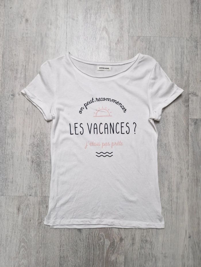 Tee-shirt manches courtes Cache-cache "on peut recommencer les vacances j'étais pas prête" - photo numéro 1