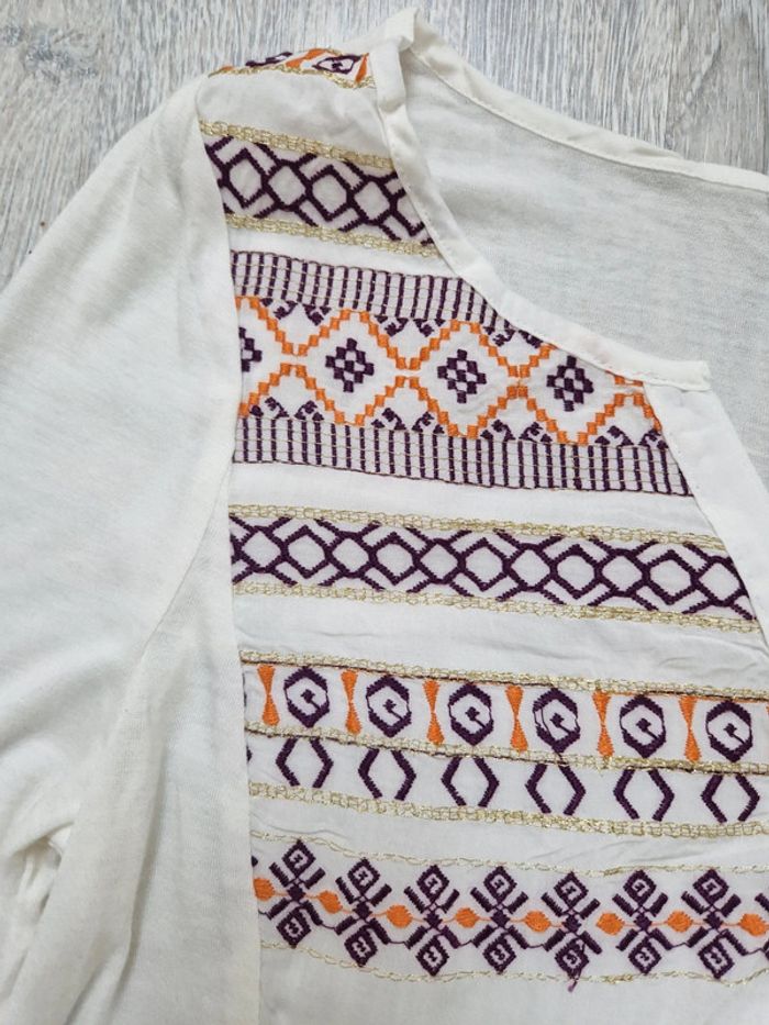 Blouse écru promod XS neuve avec étiquette col V boutonné et broderies - photo numéro 5