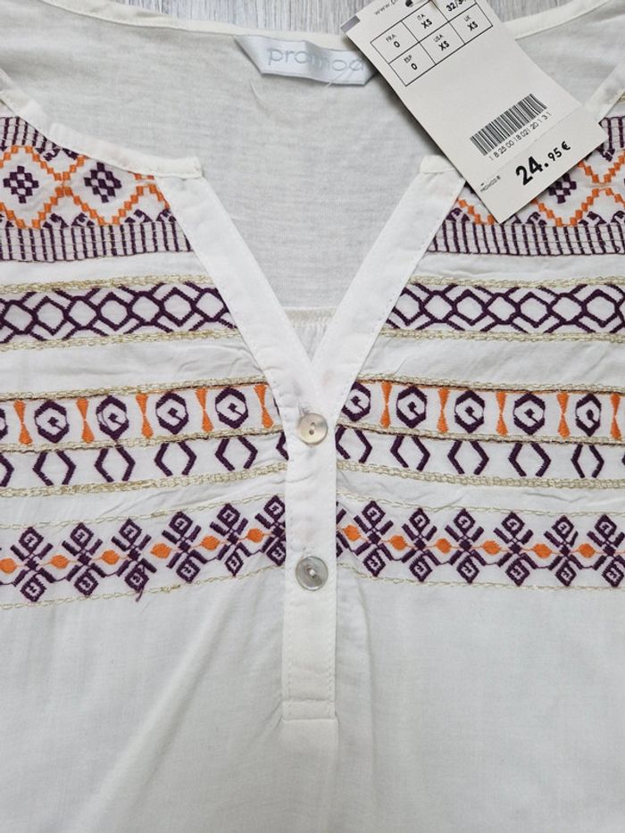 Blouse écru promod XS neuve avec étiquette col V boutonné et broderies - photo numéro 1