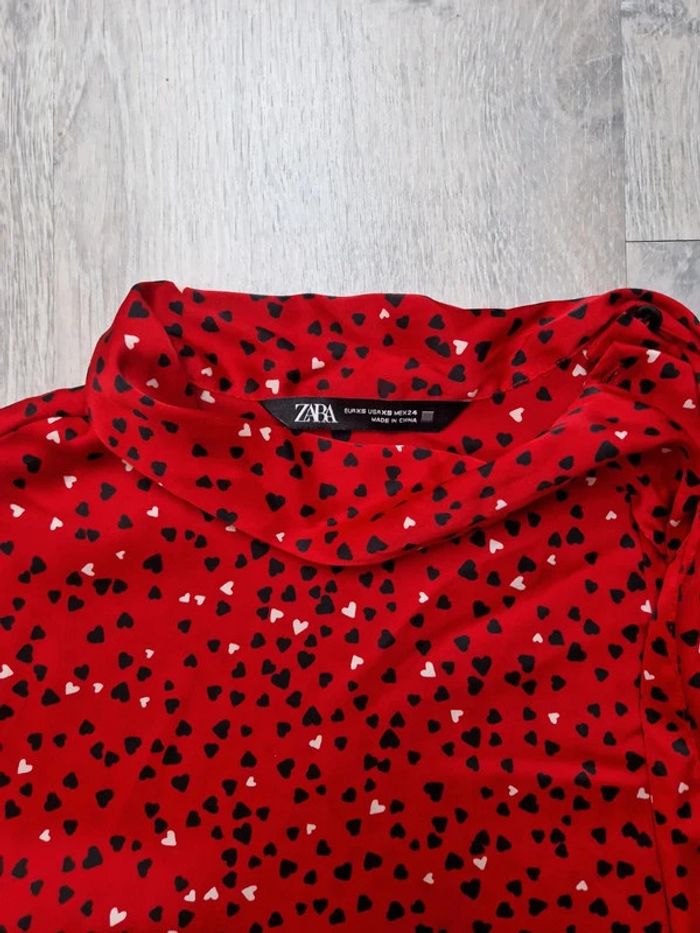Blouse fluide Zara neuve XS rouge avec cœurs noirs et blancs - photo numéro 1