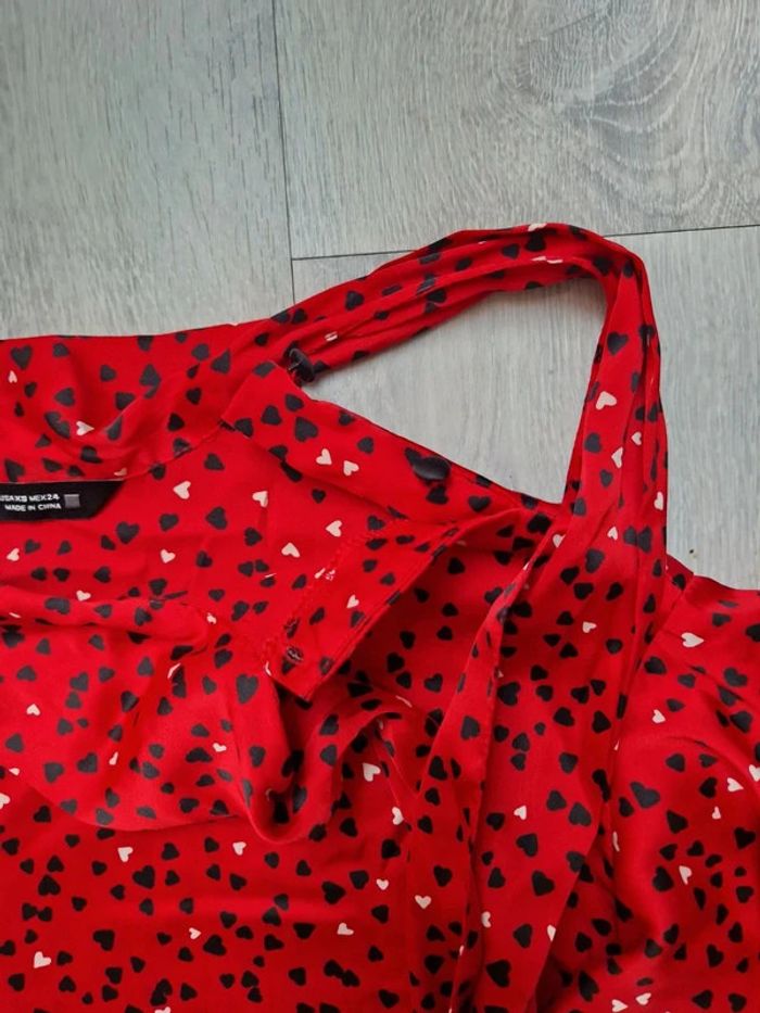 Blouse fluide Zara neuve XS rouge avec cœurs noirs et blancs - photo numéro 5
