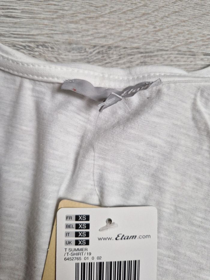 Débardeur etam XS neuf avec étiquette blanc avec fleurs tropicales
