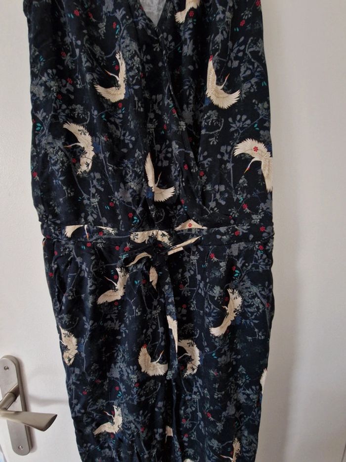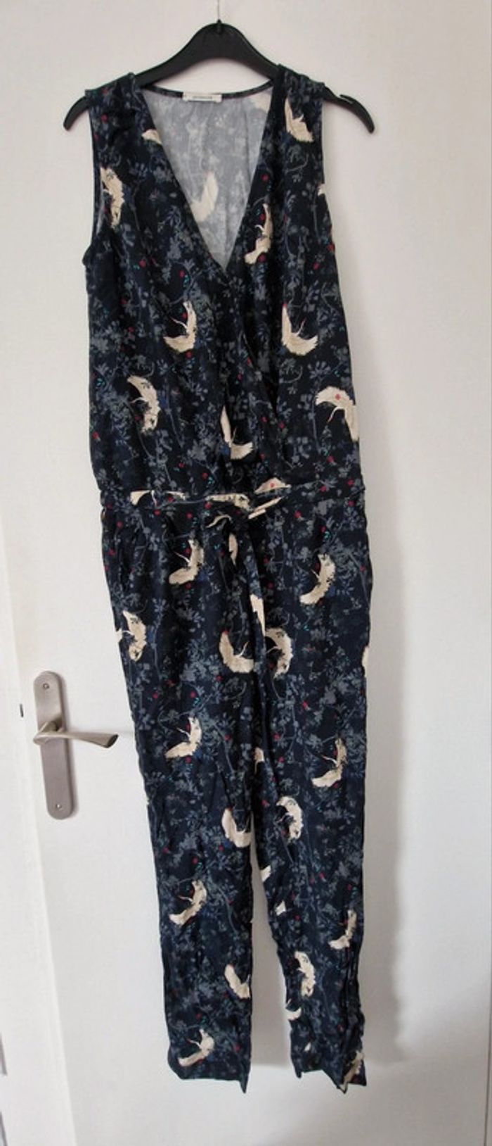 Combinaison pantalon Promod #julilo7femme Étiquette de taille coupée mais c'est une taille 34 Longueur totale environ 147 cm Largeur au niveau de la poitrine environ 45 cm Bouton pression pour fermer le décolleté Lien au niveau de la taille permettant de l'ajuster Portée une fois