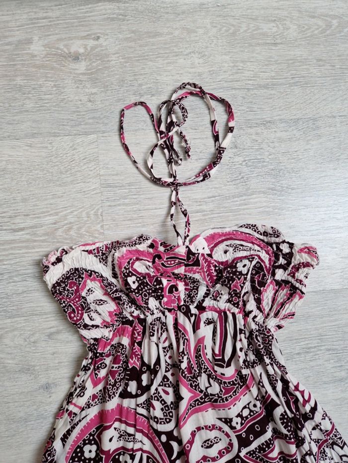 Robe bustier Bershka taille S mais convient à un XS #julilo7femme Poitrine smockée et élastiquée : largeur environ 28 cm Longueur totale environ 68 cm Lien à nouer autour du cou Tissu très léger