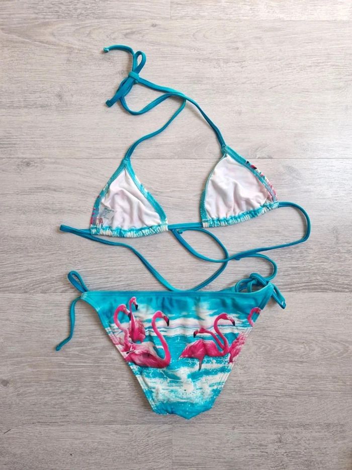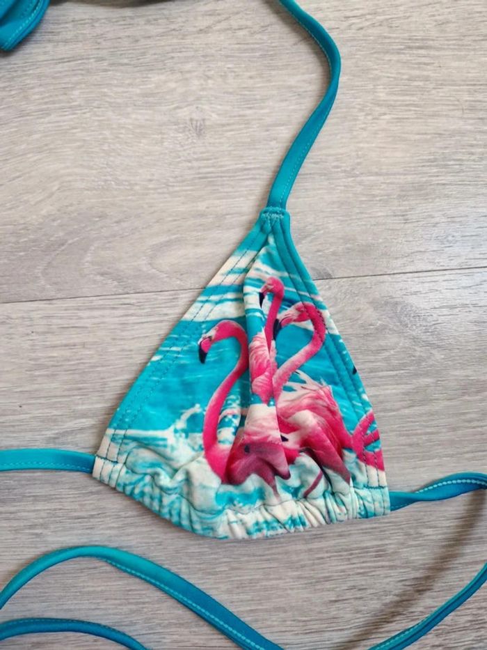 Maillot de bain bikini 2 pièces neuf asos 34 flamants rose triangle - photo numéro 5