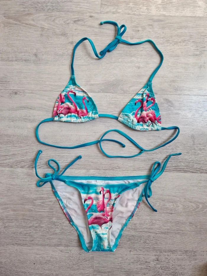 Maillot de bain bikini 2 pièces neuf asos 34 flamants rose triangle - photo numéro 1