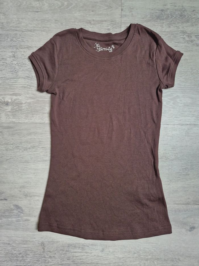 Tee-shirt marron manches courtes pimkie XS Neuf, ni porté ni lavé #julilo7femme 100 % coton Longueur totale environ 56 cm Largeur au niveau de la poitrine environ 31 cm