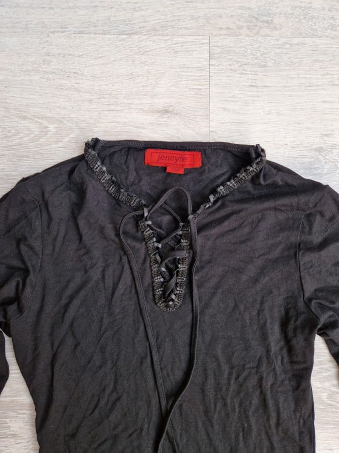 Tee-shirt noir manches longues décolleté lacé jennyfer taille S convient à un XS - photo numéro 3