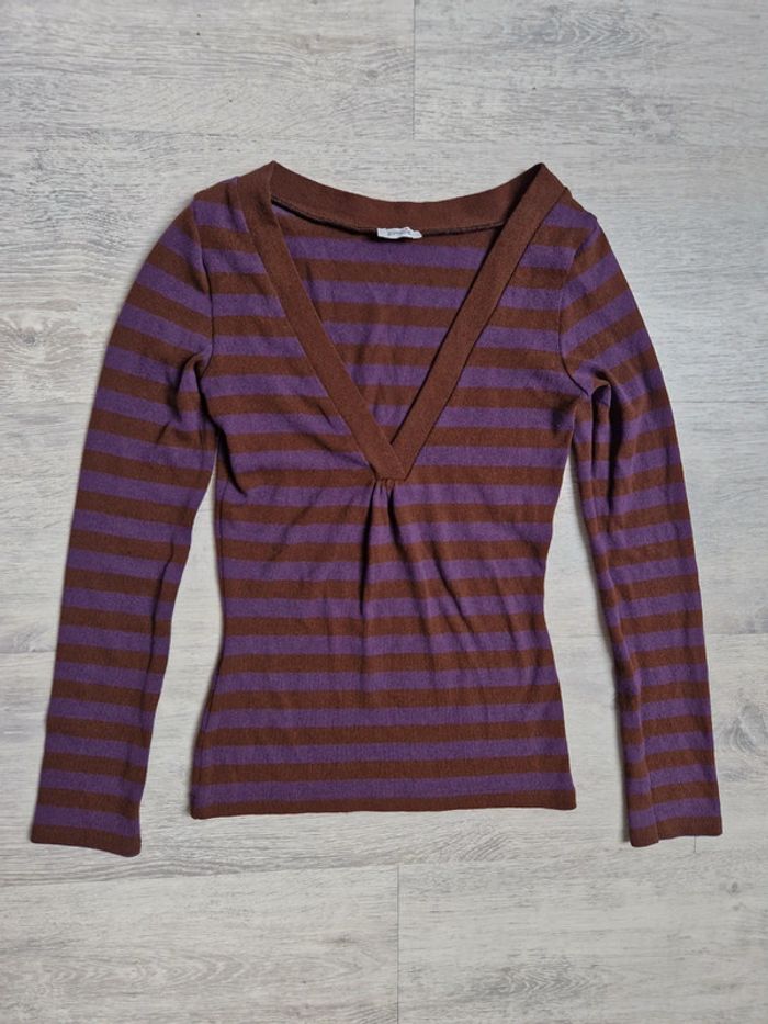 Pull fin col V pimkie neuf #julilo7femme Taille 0 ou XS Rayé marron et violet Longueur totale environ 54 cm Largeur au niveau de la poitrine environ 34 cm