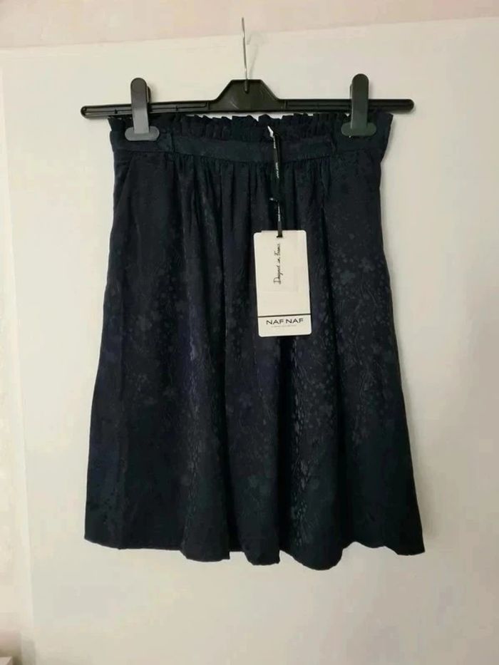 Jupe courte brillante nafnaf taille 34 bleu marine neuve avec étiquette motif fleurs - photo numéro 1