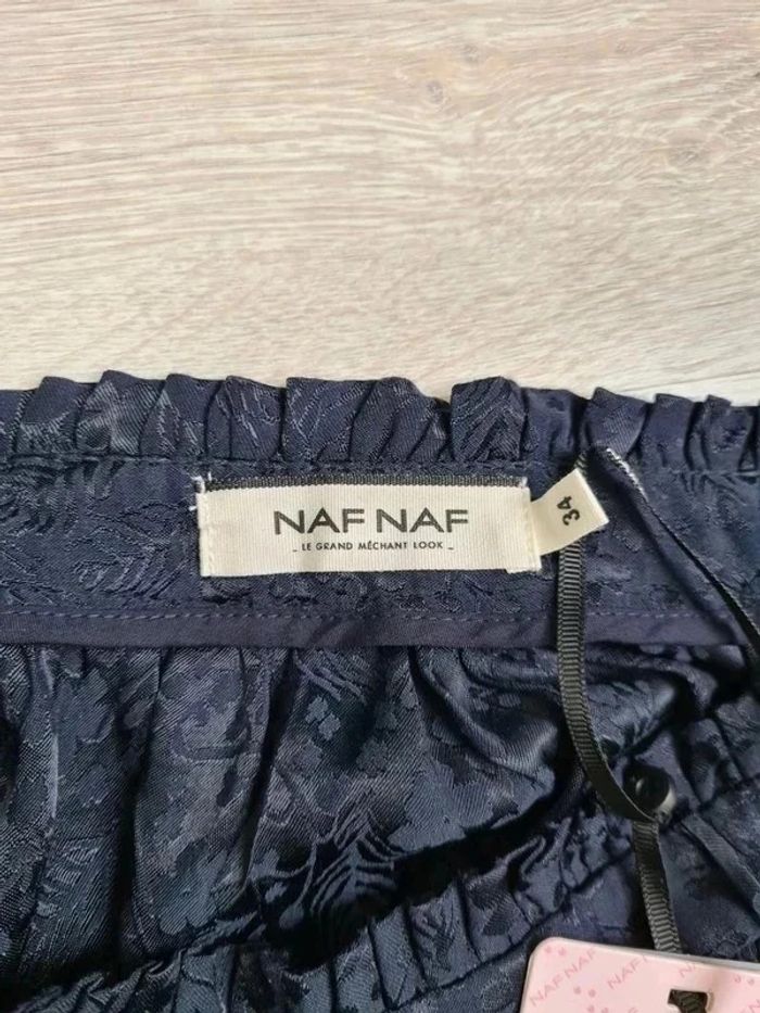 Jupe courte brillante nafnaf taille 34 bleu marine neuve avec étiquette motif fleurs - photo numéro 2