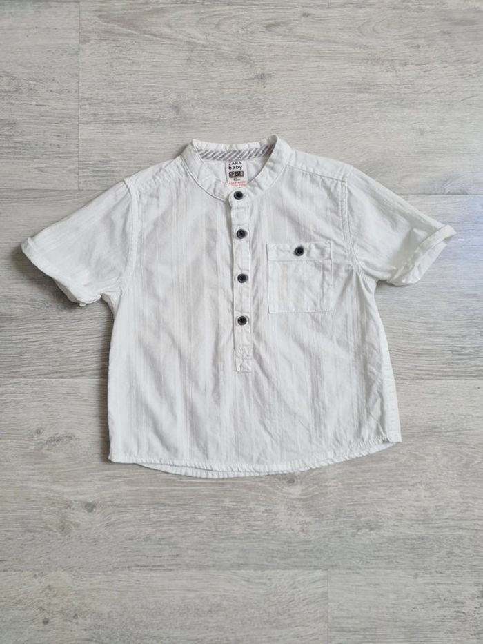 Chemise blanche manches courtes col mao Zara Baby 12-18 mois - photo numéro 1
