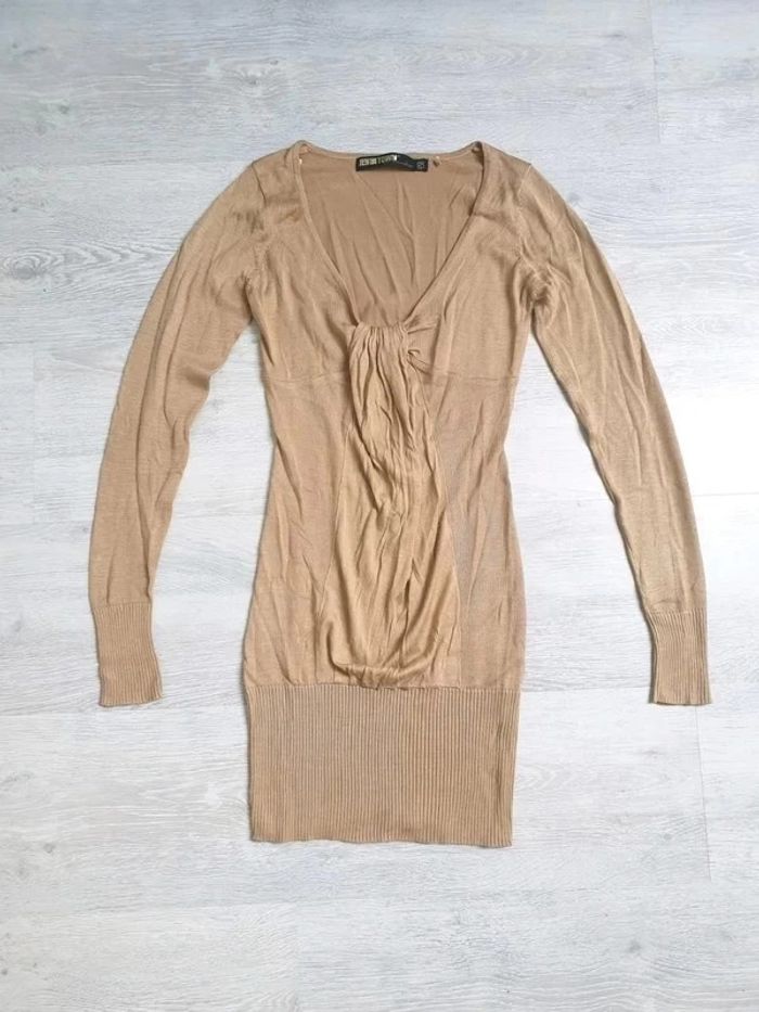 Robe pull ou tunique de la marque Jennyfer Coloris beige ou marron clair Portée une fois : elle est en excellent état Joli décolleté Étiquette intérieure coupée Taille S : taille petit. Vérifiez bien votre taille en lisant les mesures ci-dessous prises à plat (tissu extensible) - longueur totale environ 80 cm - largeur poitrine environ 39 cm - largeur taille environ 31 cm remise en main propre possible dans l'Essonne #julilo7femme