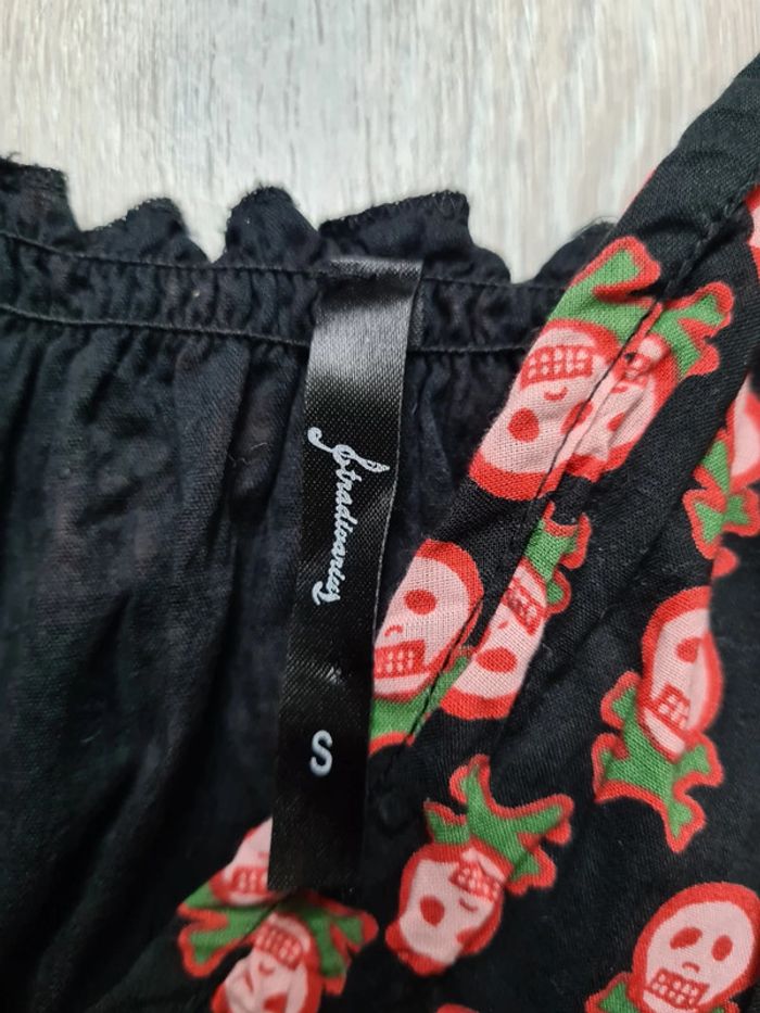 Robe courte imprimée tête de mort noire rouge et verte Stradivarius S mais convient à un XS - photo numéro 6