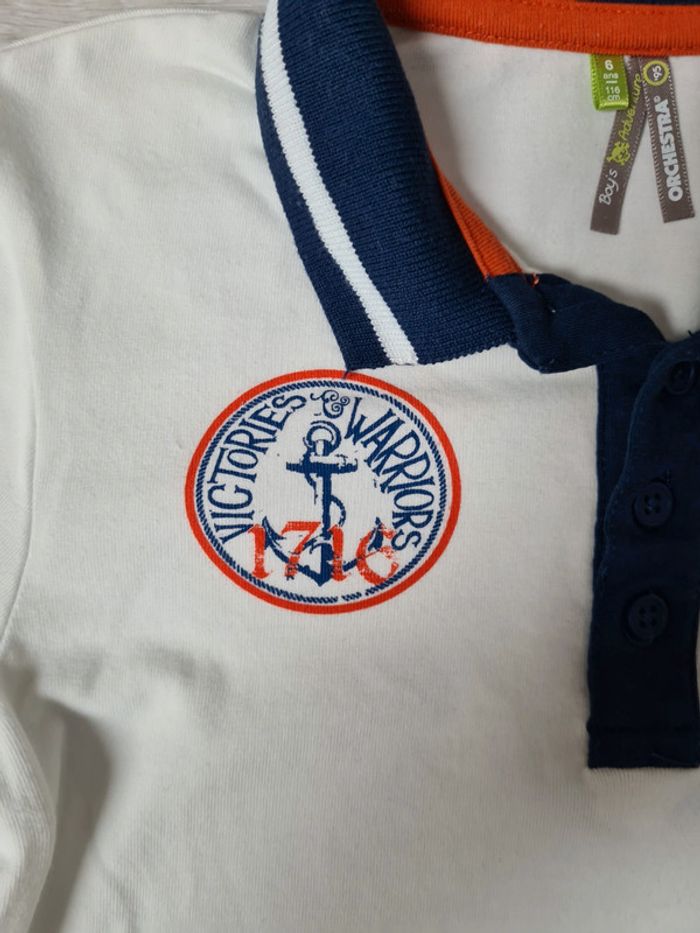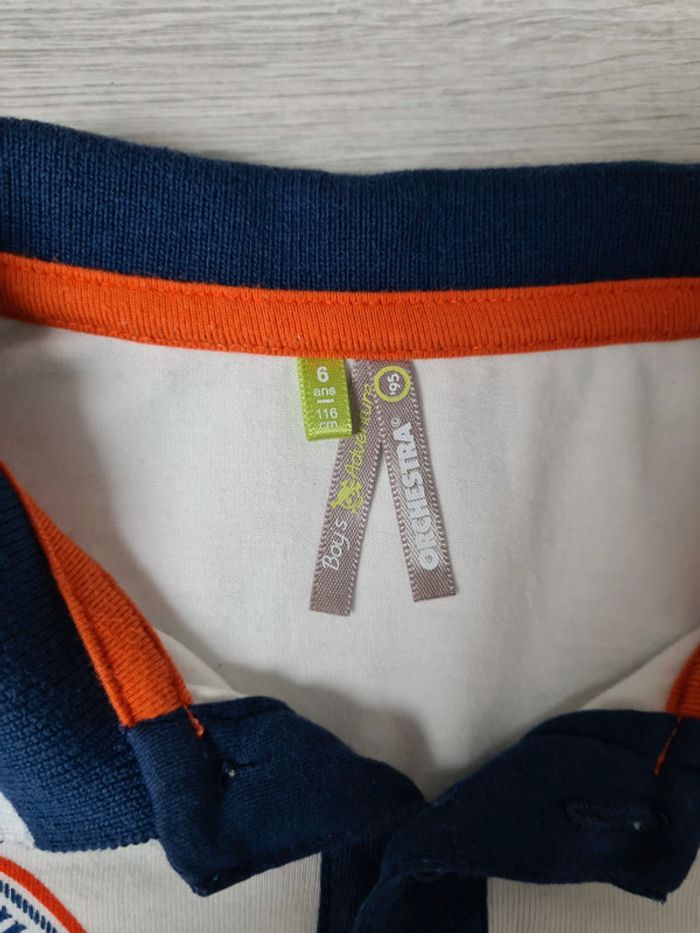 Polo manches courtes Orchestra 6 ans Blanc marine et orange Très peu porté #julilo7garçon6ans Envoi mondial relay uniquement Ou réservation pour remise en main propre dans l'Essonne