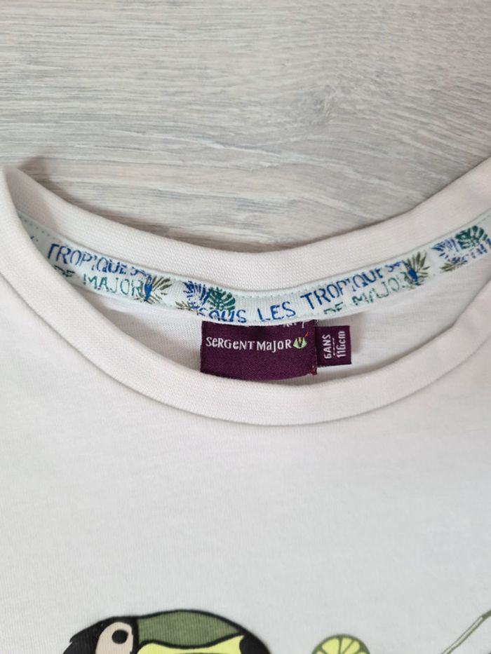 Tee-shirt manches courtes Sergent Major 6 ans Motif perroquet tropical Rio Peu porté A signaler une couture légèrement défaite sur une manche (voir photo) Ni trou ni tache #julilo7garçon6ans Envoi mondial relay uniquement Ou réservation pour remise en main propre dans l'Essonne