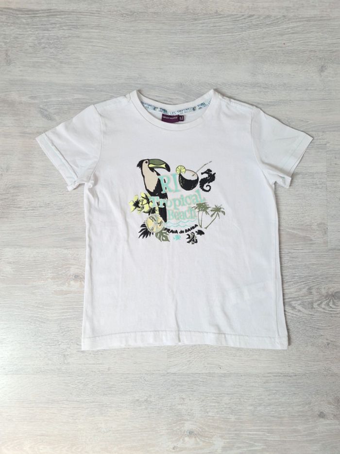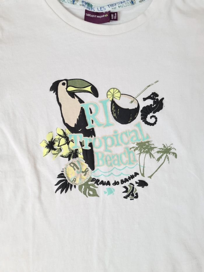 Tee-shirt manches courtes blanc motif tropical Rio avec perroquet taille 6 ans Sergent Major