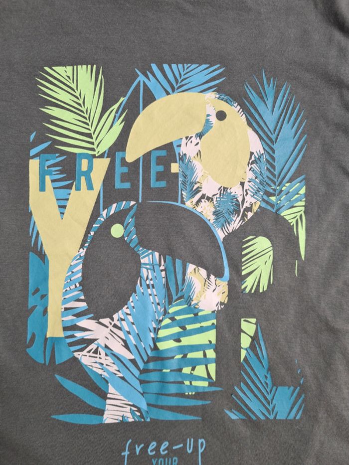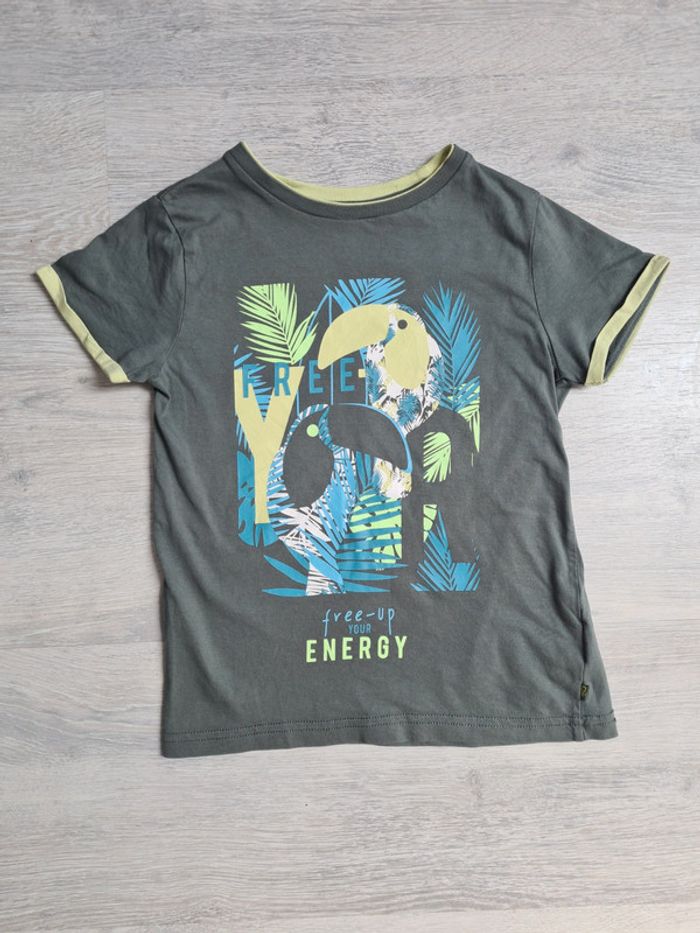 Tee-shirt manches courtes Okaïdi 6 ans Motif tropical avec perroquet Coloris kaki et menthe #julilo7garçon6ans Envoi mondial relay uniquement Ou réservation pour remise en main propre dans l'Essonne