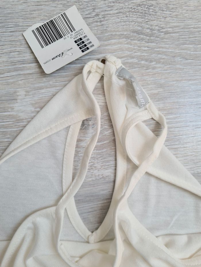 Top Etam crème Etam XS Neuf avec étiquette Bouton à accrocher dans la nuque avec un effet goutte #julilo7femme Envoi mondial relay uniquement Ou réservation pour remise en main dans l'Essonne