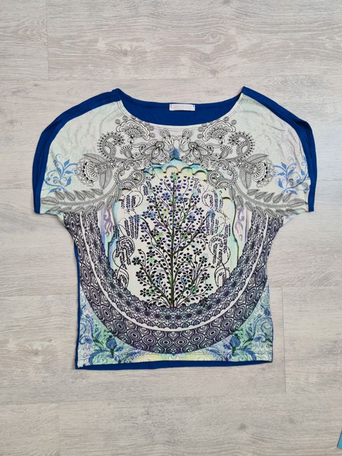 Tee-shirt Promod XS Bleu avec imprimé provençal lavande fleuri Comme neuf : porté une seule fois Étiquette de composition coupée #julilo7femme Envoi mondial relay uniquement Ou réservation pour remise en main propre dans l'Essonne