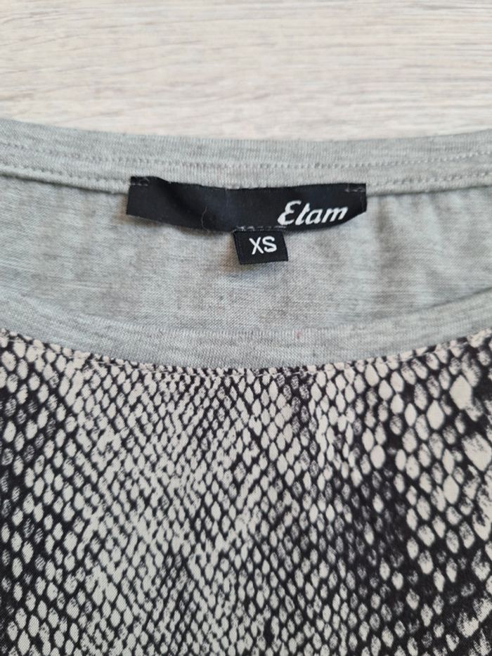 Tee-shirt gris Imprimé reptile/serpent Etam XS Petit prix : il y a un tout petit accroc à repriser dans le dos #julilo7femme Envoi mondial relay uniquement Ou réservation pour remise en main propre dans l'Essonne