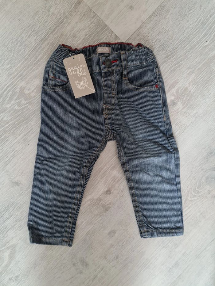 Pantalon jean rayé Grain de blé Taille 12 mois Neuf avec étiquette Taille réglable #julilo7garçon12mois Envoi mondial relay uniquement Ou réservation pour remise en main propre dans l'Essonne