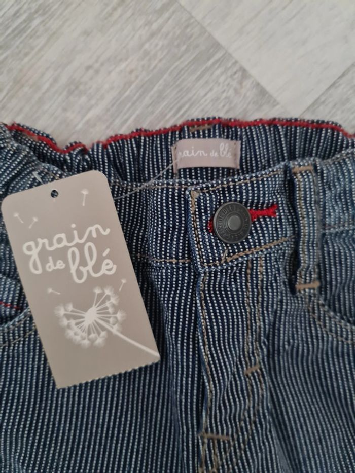 Pantalon jean rayé Grain de blé 12 mois neuf avec étiquette - photo numéro 2