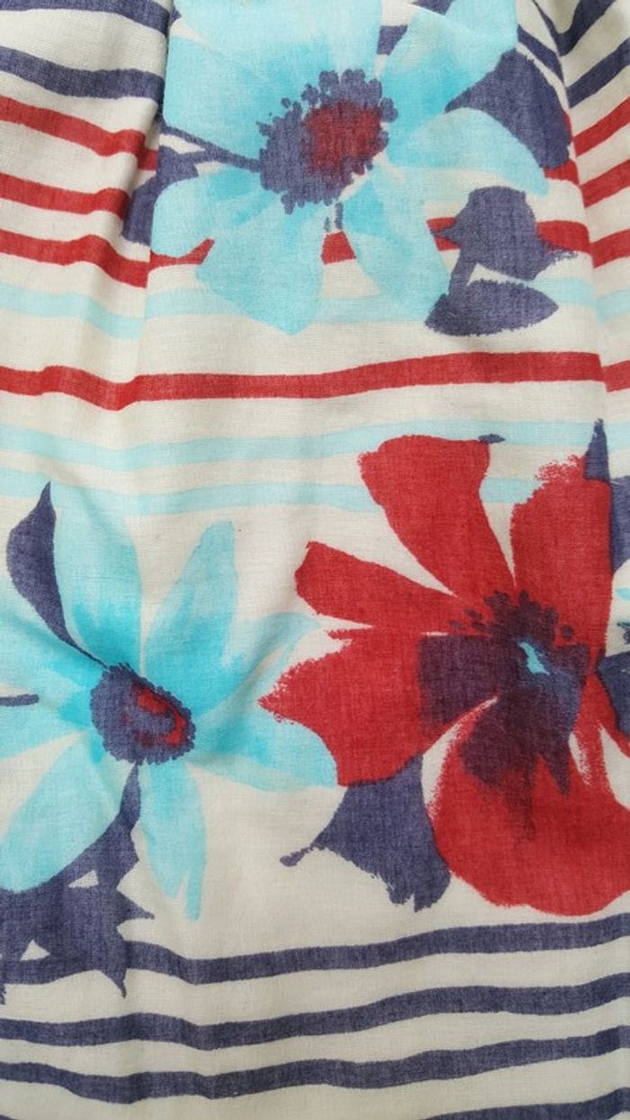 Jupe promod 36 S crème rayée avec fleurs rouges et bleues - photo numéro 2