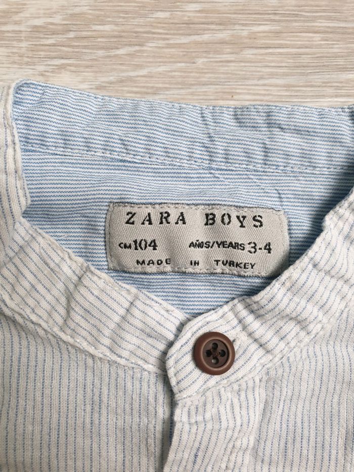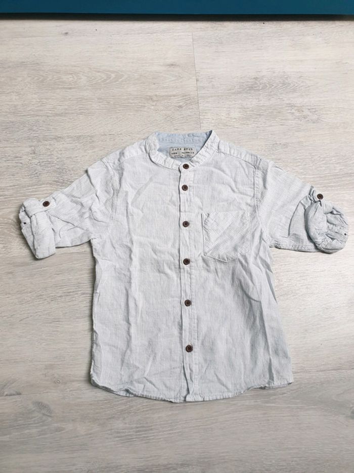 Chemise blanche rayée bleue zara 3-4 ans manches retroussables - photo numéro 1