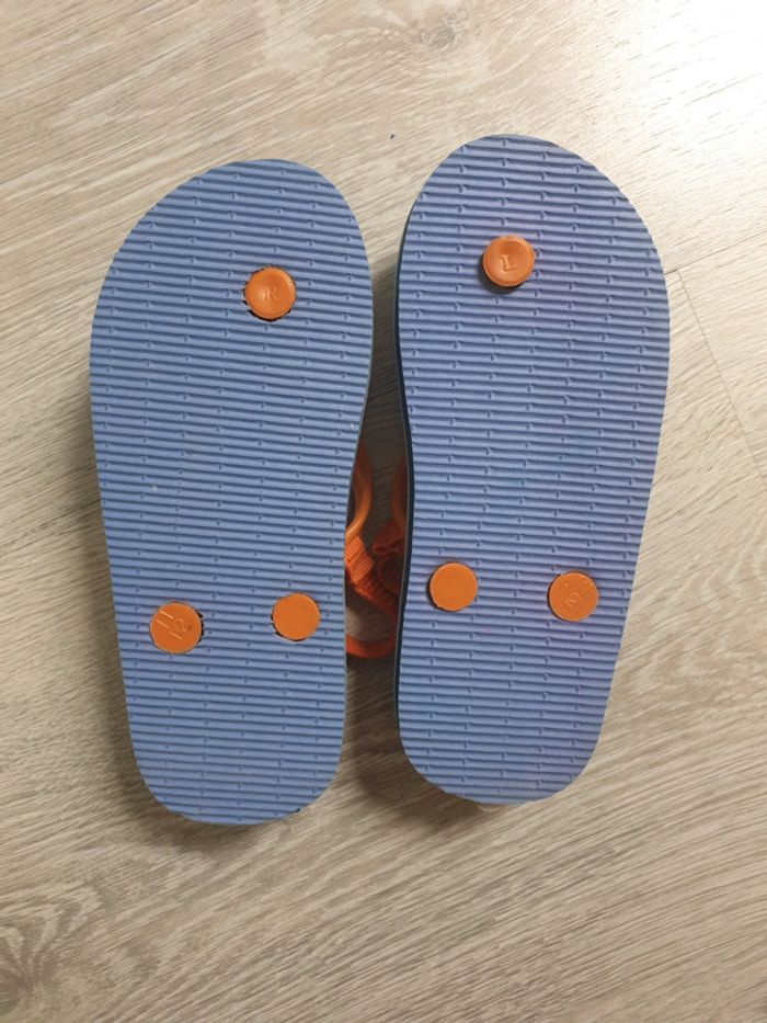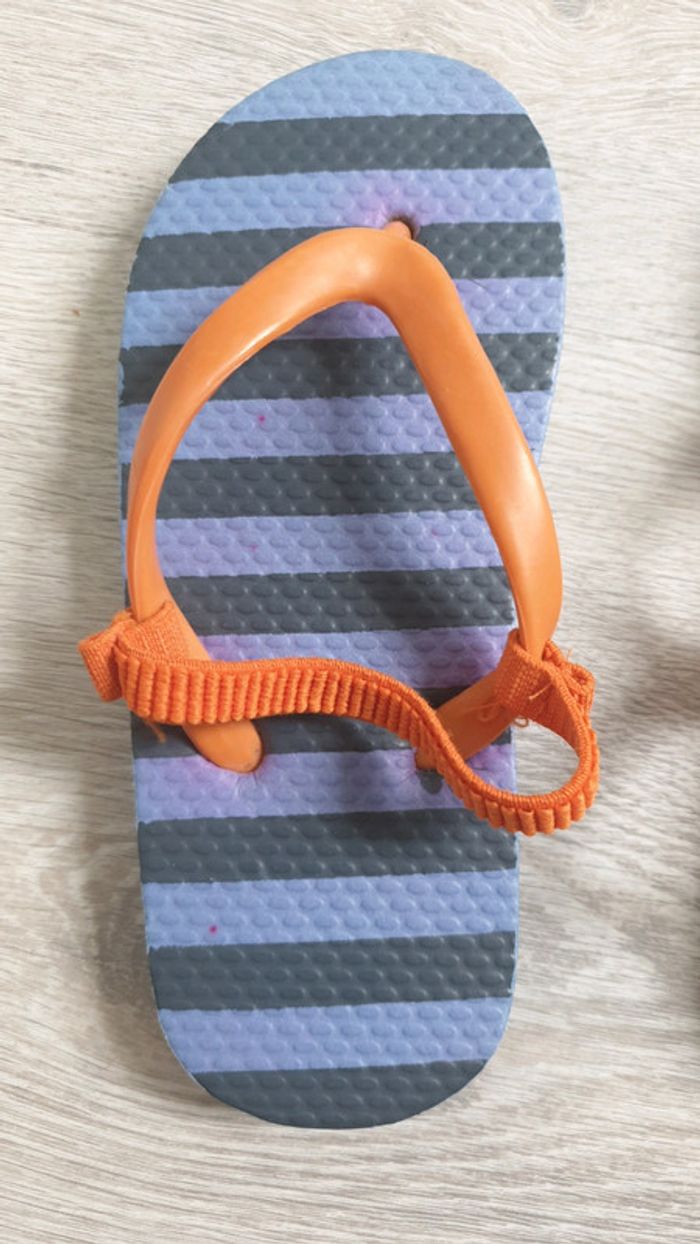 Tongs neuves et jamais portées Pointure 26/27 Élastique se mettant derrière la cheville. Elles sont bleues et marine avec du orange. Il y également du violet au niveau des insertions de la partie orange. A signaler : 2 petits points violets sur la semelle de la tong gauche, ils y étaient déjà lors de l'achat. Envoi mondial relay uniquement Ou remise en main propre dans l'Essonne ou sur Paris en semaine le midi