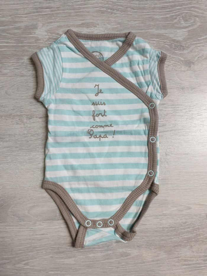 Body de la marque Tape à l'oeil Taille 1 mois : attention car il taille petit Inscription : Je suis fort comme Papa ! Croisé et manches courtes Envoi mondial relay uniquement ou remise en main propre #julilo7unmois