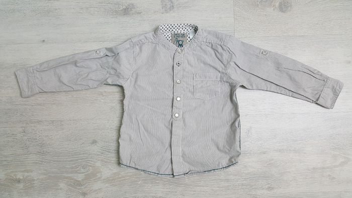 Chemise Obaibi blanche avec rayures grises Les manches sont retroussables Très bon état 3 ans