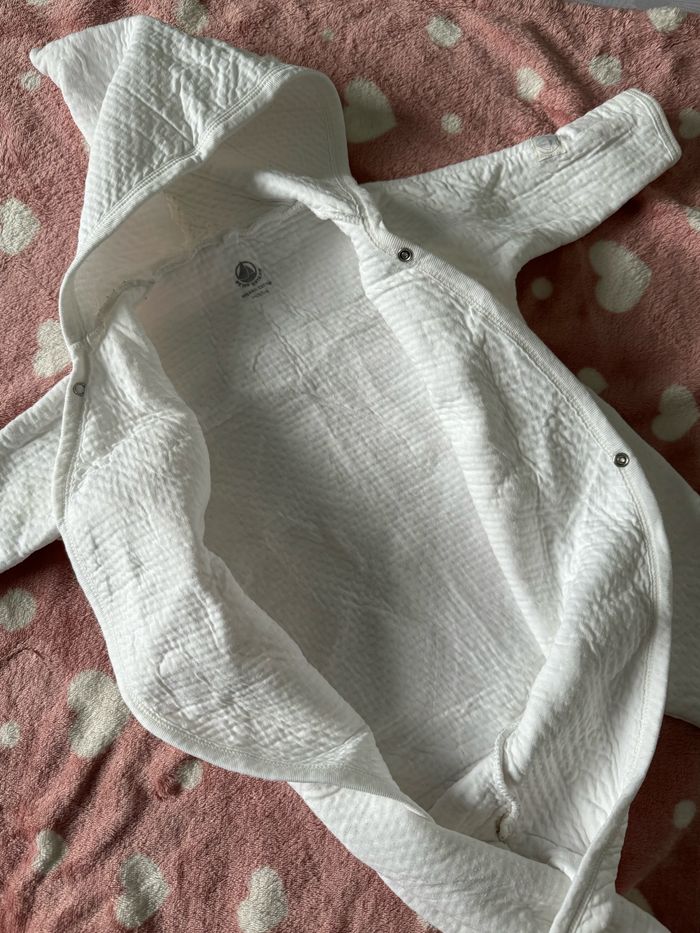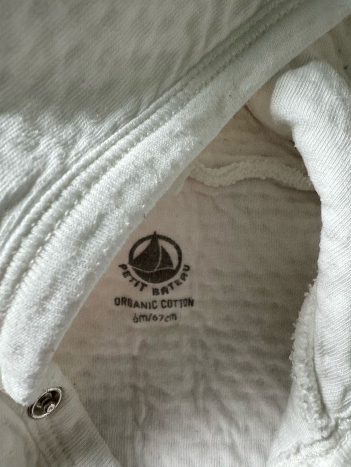 Combi pilote blanche petit bateau taille 6 mois en excellent état Idéal pour les sorties avec pour les journées et soirée d été plus fraîches