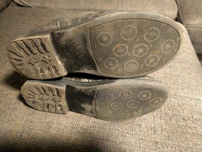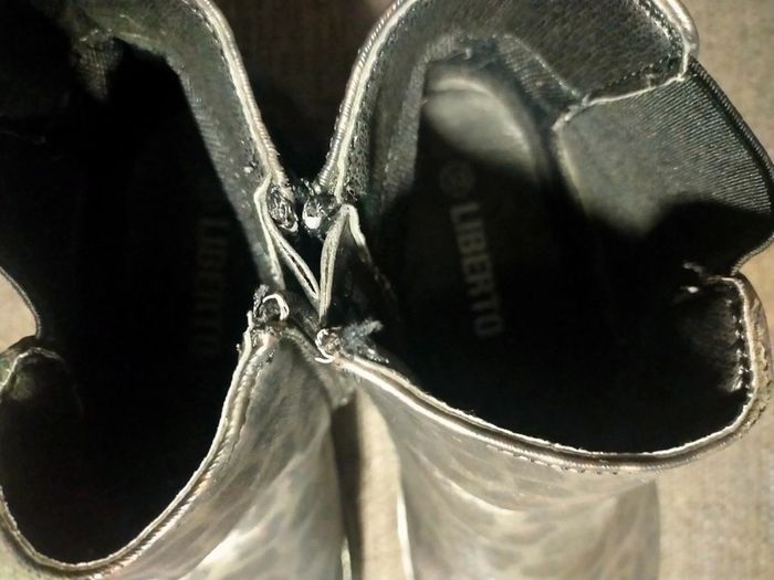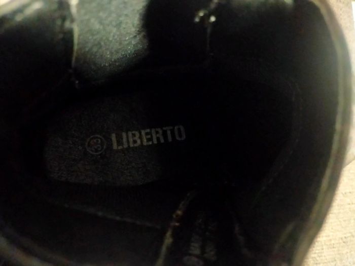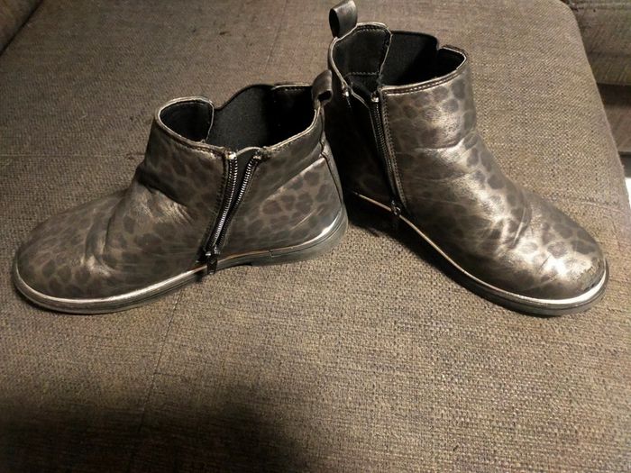 Bottines pour fille en cuir noir panthère pointure 33 marque original Liberto . Fermeture sur le coté pt talon . Très peu porté très bonne état juste 10 mn de trotinette sur le haut pied gauche griffé voir photo 9. Libre de suite envoi possible à vos frais. Autres annonces zabou25.