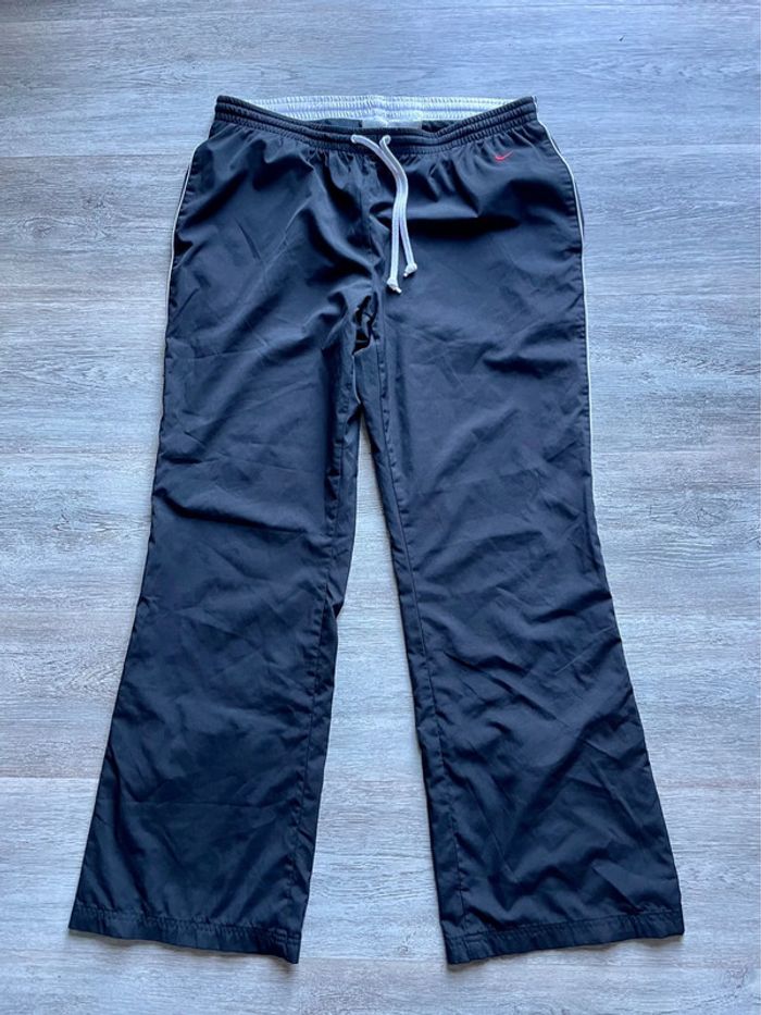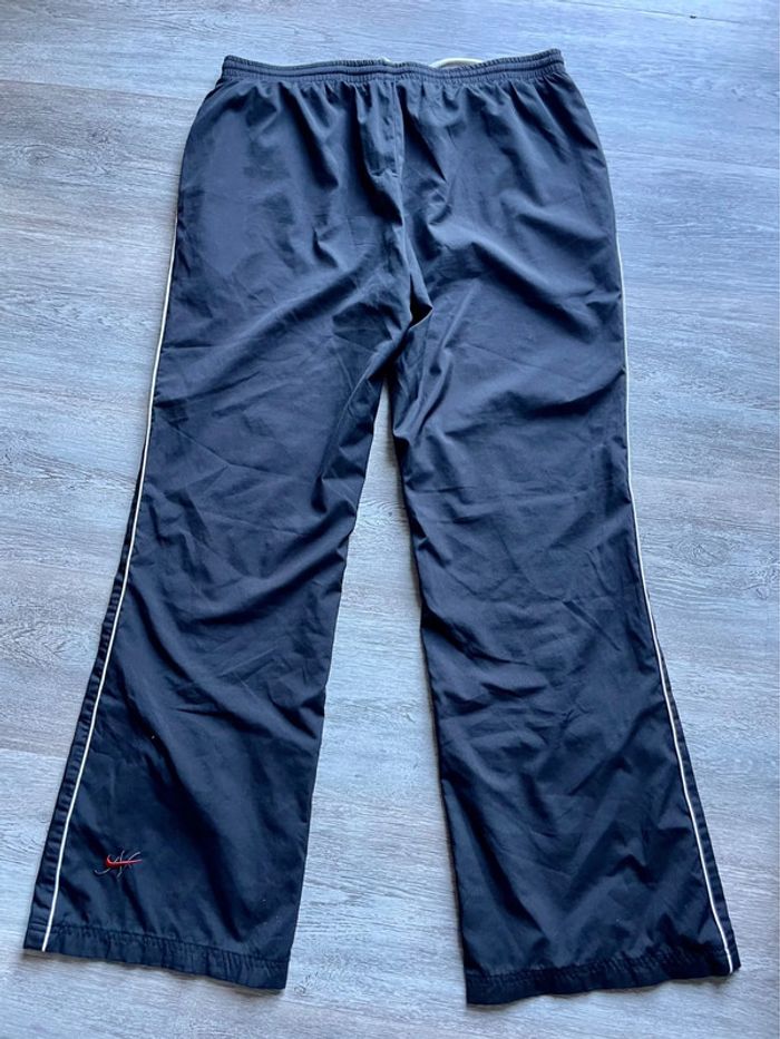 Très bonne état Modèle Femme Poches sur les côtés Sigle Nike brodé devant et sur un bas de jambe à l’arrière. Mesure taille 41 cm avec élastique et cordon pour ajuster. Étiquette taille marqué 44/46 J3 Longueur 102 cm