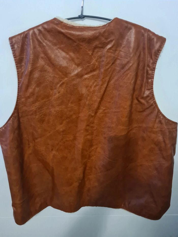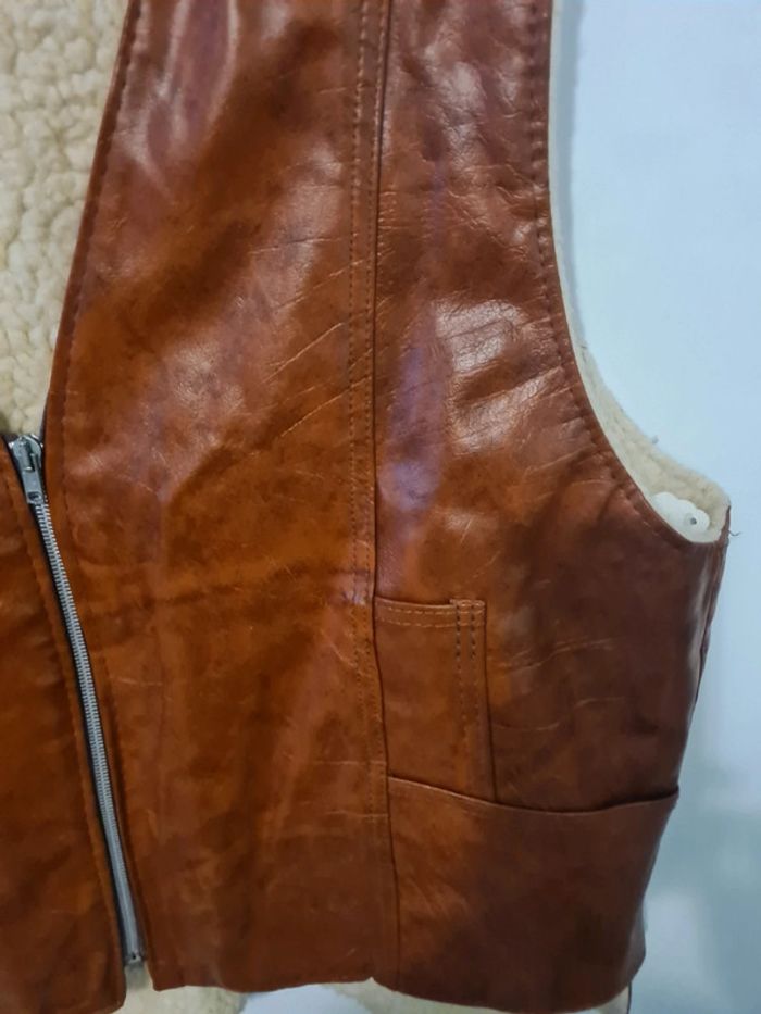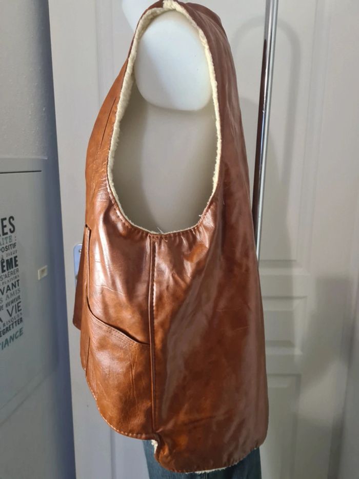Gilet sans manches vintage cuir et laine - photo numéro 5