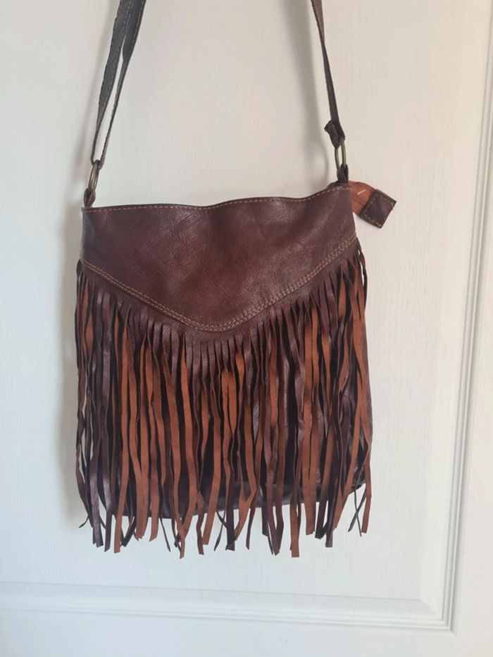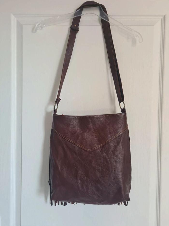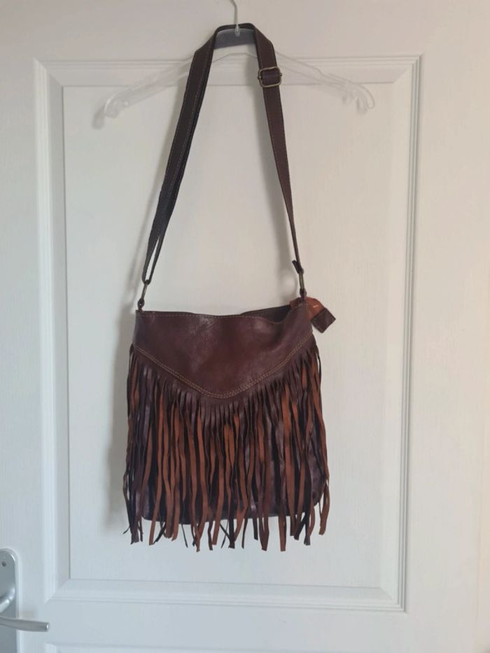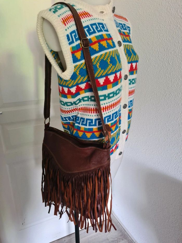 Sac vintage à bandoulière à franges en cuir véritable. - photo numéro 2
