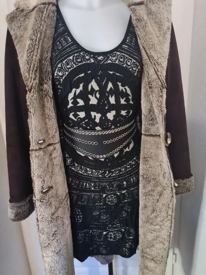 Manteau long effet peau lainée - photo numéro 2