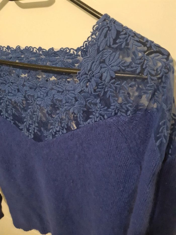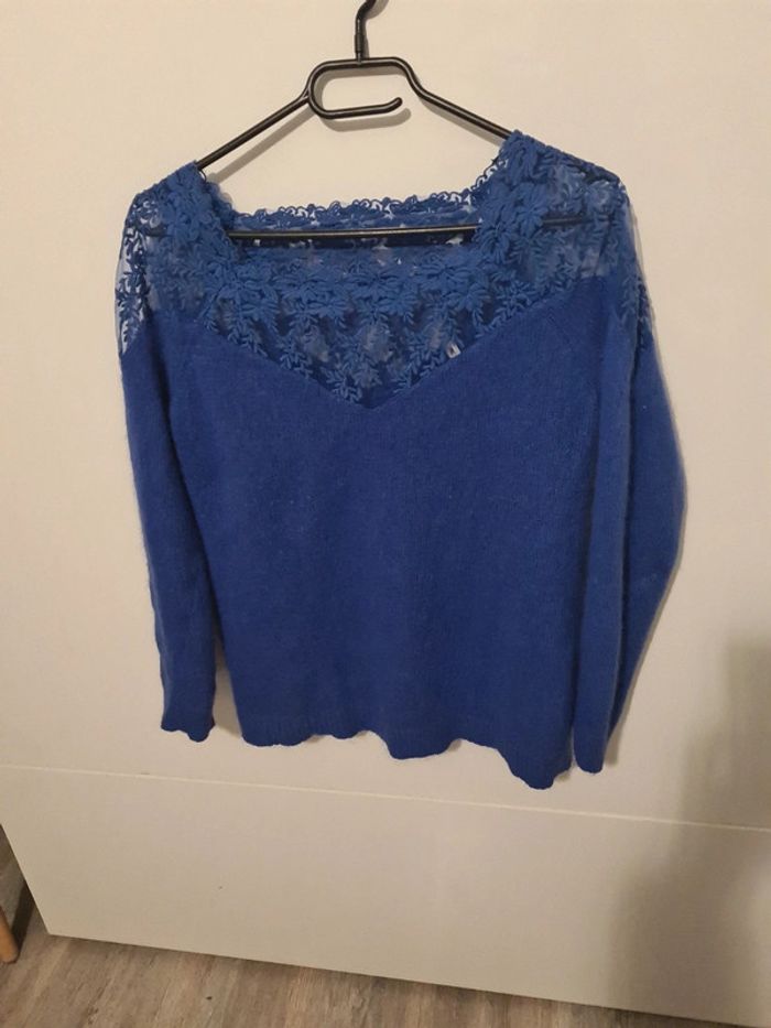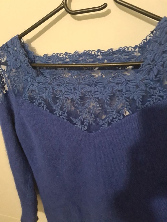 Pull laine col bateau ajouré vintage - photo numéro 2