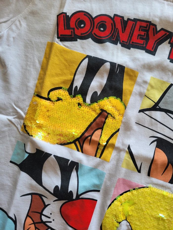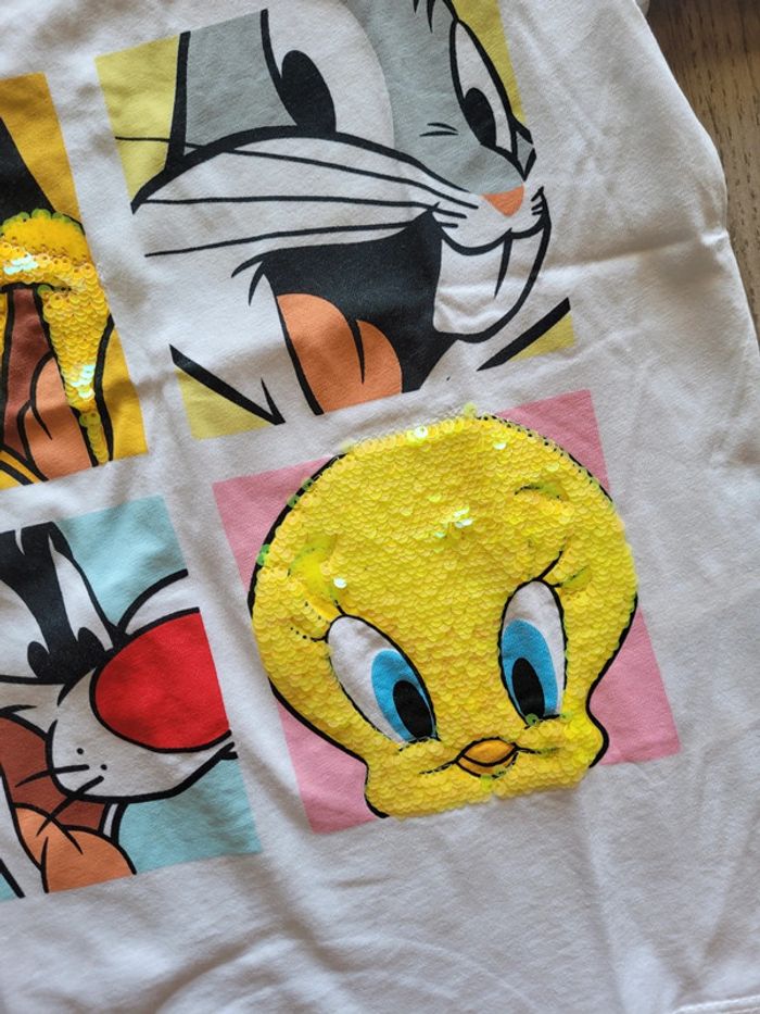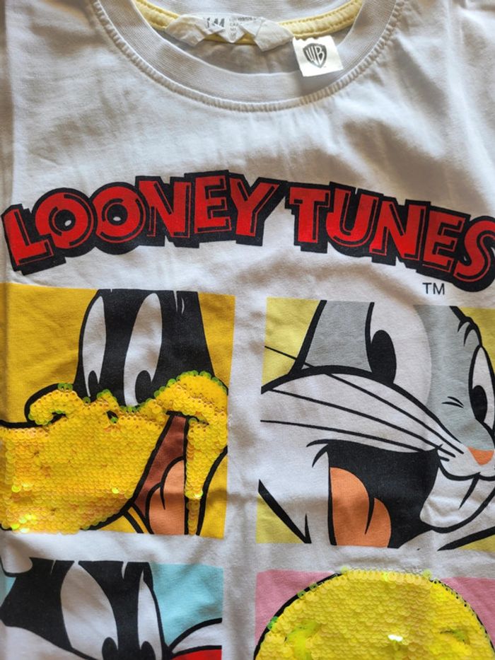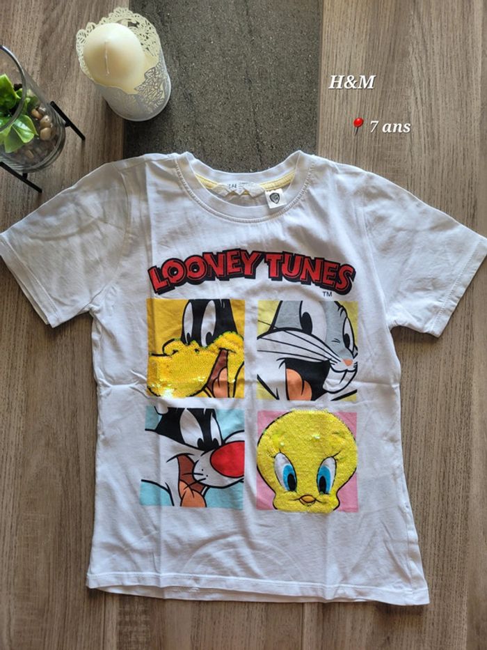 Tee-shirt manches courtes de marque h&m en taille 7/8 ans ( 122/128cm) Sequins réversibles. Décor Looney Tunes Très bon état général 📍Envoi par Mondial relay en 24h Nombreux d'autres vêtements disponibles, n'hésitez pas à jeter un coup d'oeil à mon dressing ou servez vous du hashtag suivant sans filtres: #morgane3007garçon7ans
